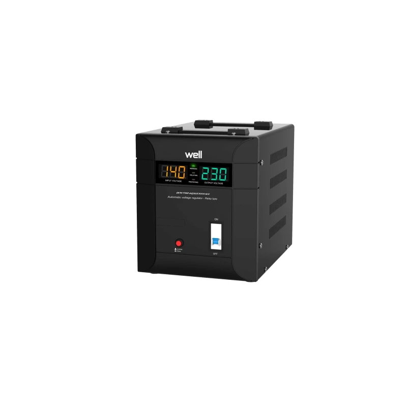 See stabilisaator on varustatud kaitsvate funktsioonide komplektiga, sealhulgas viivitusega käivitusfunktsioon pärast pingelangusi ja ülekoormuskaitse automaatsete kaitsmetega. See on asjatundlikult disainitud säilitama konstantset pingetaset, kaitstes tundlikku elektroonikat ebastabiilsete pingetingimuste kahjulike mõjude eest. Kasutaja optimaalse ohutuse ja elektroonilise trükkplaadi rikete vältimiseks on oluline korralik maandus.