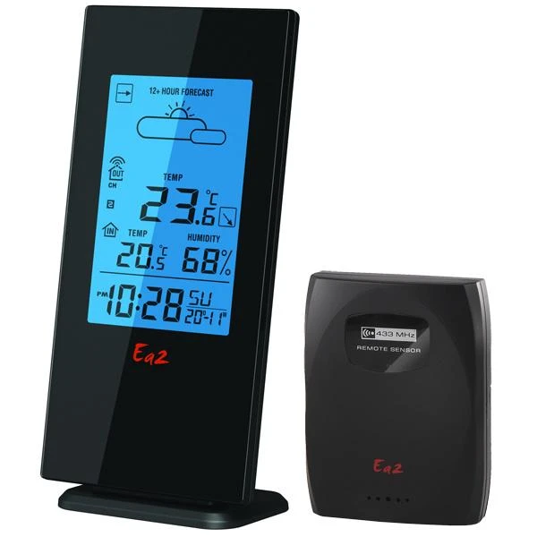 Метеостанция с функцией прогноза погоды на ближайшие 12-24 часа. Покажет внутреннюю температуру и влажность, а с помощью внешнего дистанционного датчика, поставляющегося в комплекте с устройством, измеряет температуру там, где расположен датчик.