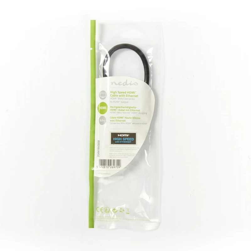 Это переходник Mini HDMI штекер - HDMI разъём с 20см кабелем, цвет Чёрный.