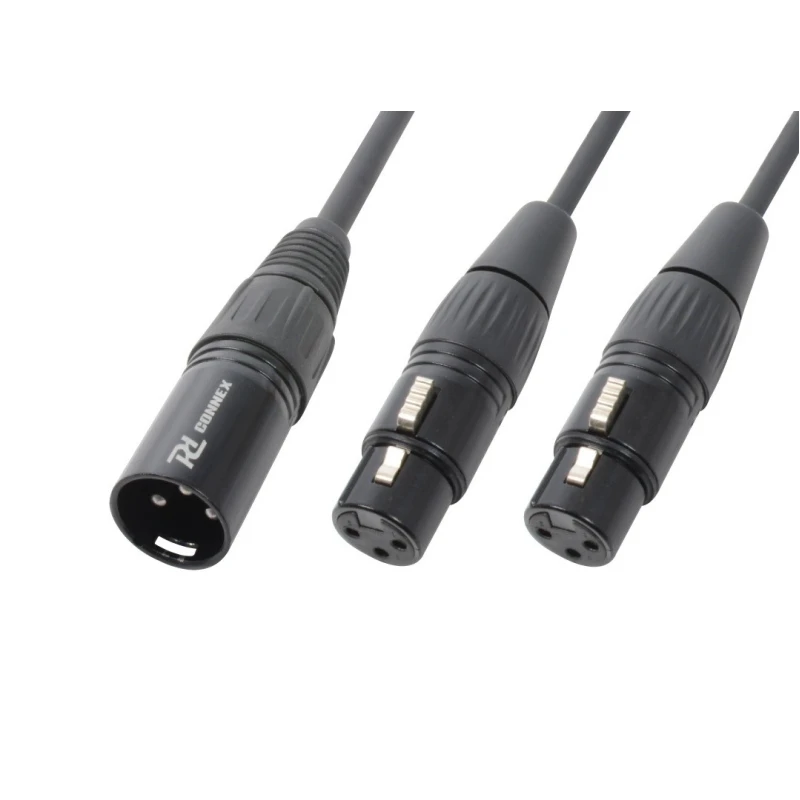 `The PD Connex CX142 (SKU: 176.977) is a professional 0.5-meter audio splitter cable designed to distribute a single balanced XLR signal across two outputs. It provides a reliable solution for splitting audio feeds while maintaining signal integrity.