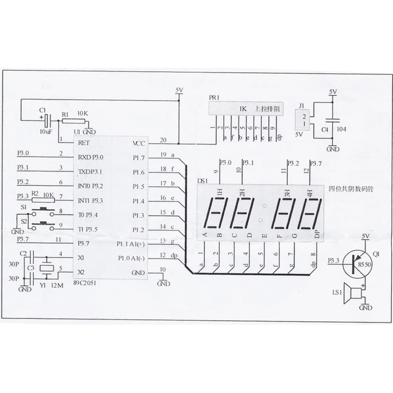 - AT89C2051-based of four electronic clock kit