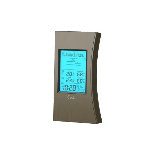 Полнофункциональная метеостанция с функцией прогноза погоды на ближайшие 12-24 часа и отображением измеряемого давления на столбиковой диаграмме с историей за 12 часов. Измеряет внутреннюю температуру и влажность, а с помощью внешнего дистанционного датчика, входящего в комплект, измеряет температуру и влажность там, где расположен датчик.