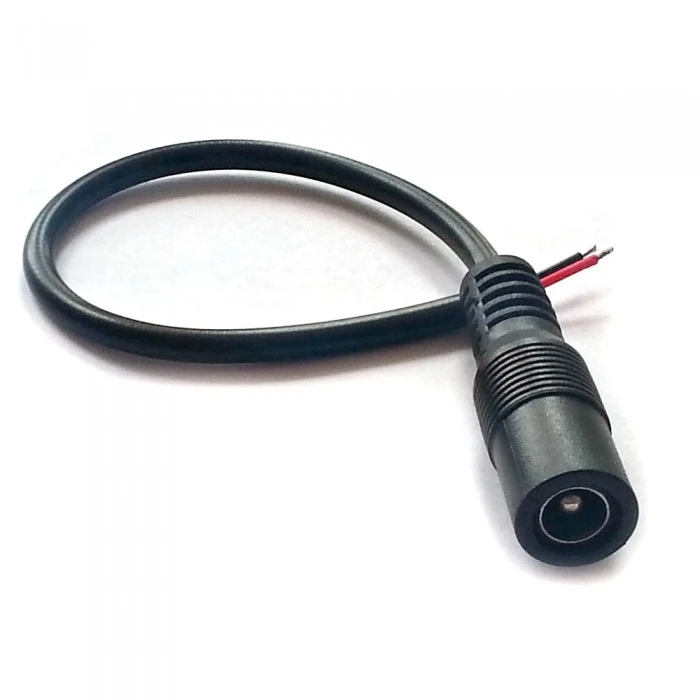 2.1/5.5мм 12мм DC прямой разъем с черным кабелем 15см