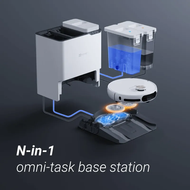 EZVIZ RS20 Max — это флагманский робот-пылесос 2-в-1 с функцией влажной уборки, оснащенный полностью автоматизированной базовой станцией для комплексного ухода за домом. Он сочетает в себе высокую производительность уборки с передовой навигацией на базе ИИ для работы с различными типами напольных покрытий и мусора.