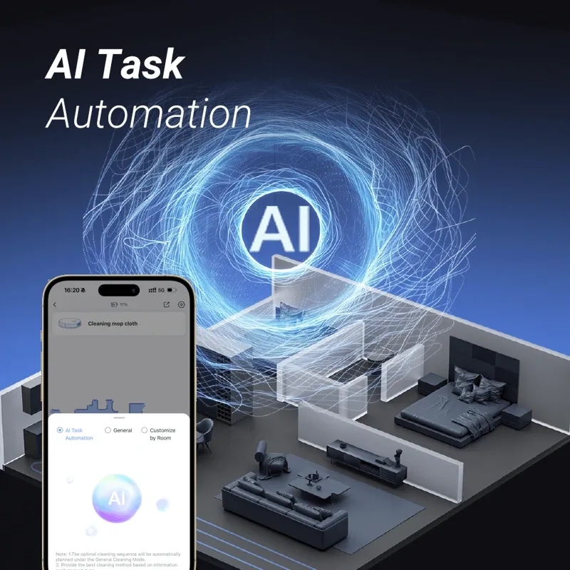 - Использует ИИ-камеру и лидар LDS для распознавания более 108 типов объектов и обнаружения жидких пятен для автоматической повторной уборки.