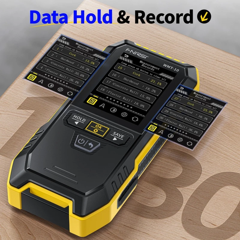 Этот инструмент идеально подходит для профессионалов в деревообрабатывающей промышленности и любых пользователей, которым требуется точная оценка влажности в древесине, гипсе или кирпичных материалах.