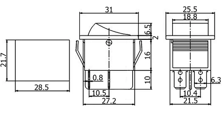 Клавишный выключатель 2*ON-OFF 15A 230V Красный