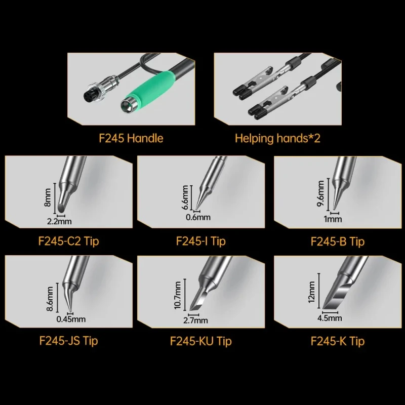 DWS-200 от Fnirsi - это паяльная станция высокой мощности (200 Вт) и точности от производителя. Она наиболее часто используется для ремонта бытовой электроники. Устройство имеет диапазон температур от 100℃ до 450℃ и поддерживает 3 различных предустановленных температуры, используя поставляемую в комплекте подставку. Также есть режим сна для паяльника, который помогает сохранить насадки в хорошем состоянии. Отображает график температуры и мощности, предоставляя информацию о мощности пайки.