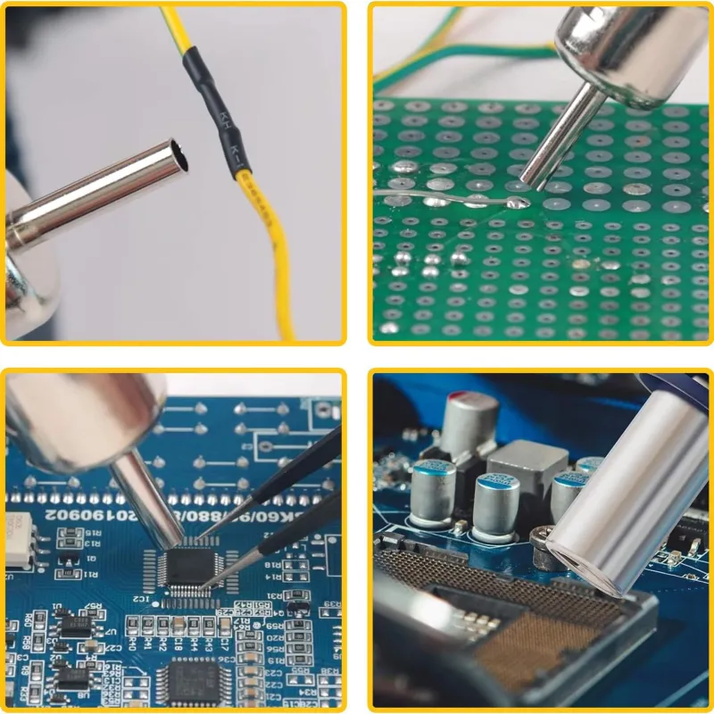 Эта станция идеально подходит для выполнения различных задач, включая общие работы с электроникой, точный ремонт SMD-компонентов и различные хобби-проекты. Ее легкий и портативный дизайн делает ее подходящей как для стационарных рабочих мест, так и для мобильного использования.