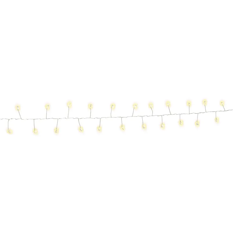 Эта гирлянда на батарейках создает особенно пышную и впечатляющую атмосферу благодаря особому расположению диодов в виде кластеров. Она идеально подходит для создания атмосферного освещения на террасе, балконе, у окна, в цветочных композициях или даже вплетенной в кусты.