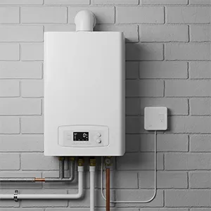 Система состоит из двух блоков: Термостата (подходит для размещения на столе или настенного монтажа) и Приемника (устанавливается рядом с котлом). Максимальное расстояние радиочастотной связи между термостатом и приемником составляет 30 метров.