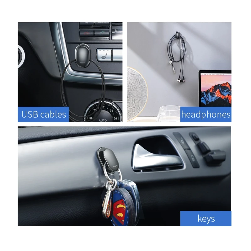 Идеально подходит для подвешивания и организации легких предметов, таких как ключи, наушники, USB-кабели и небольшие сумки. Простая установка без оставления следов делает его подходящим для использования на различных поверхностях в автомобилях, на рабочих столах или по всему дому.