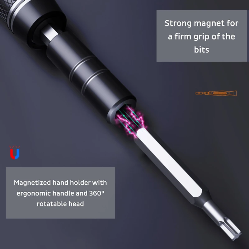 Применение: Этот набор идеально подходит для ремонта смартфонов и компьютеров. Он включает широкий ассортимент аксессуаров, помогающих откручивать и закручивать различные виды винтов.