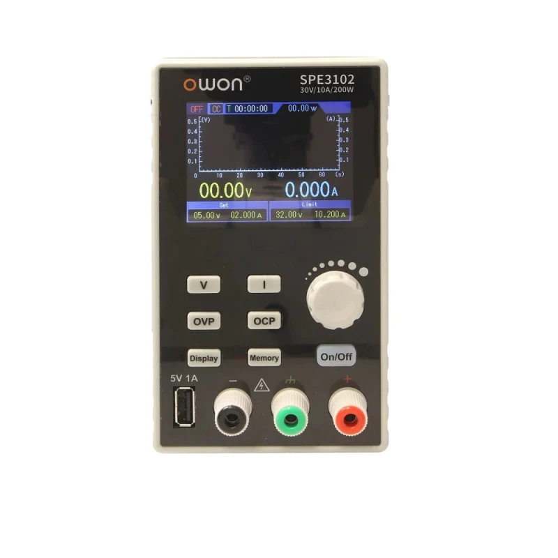 OWON SPE3102 — это компактный одноканальный программируемый лабораторный источник питания постоянного тока с ультратонким портативным дизайном. Основные характеристики
