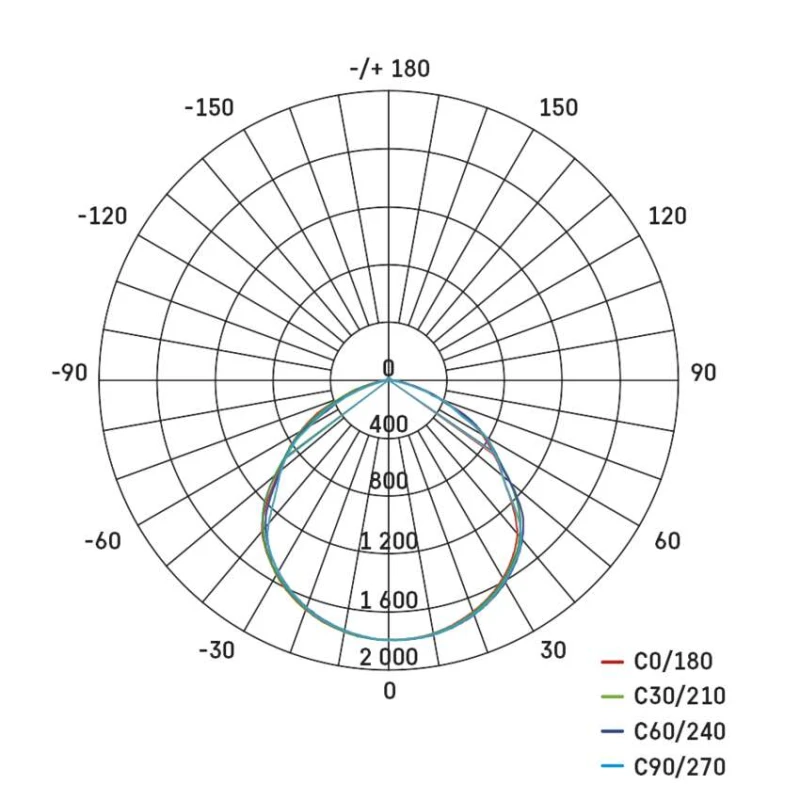 - Обеспечивает нейтральный белый свет (4000 K) с широким углом луча 120°.