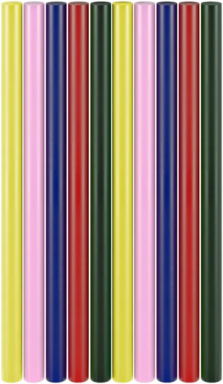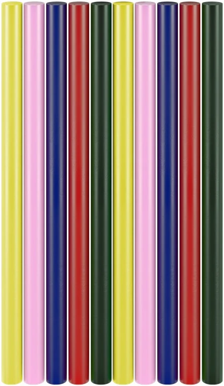 - Набор включает 10 клеевых стержней 5 различных цветов.