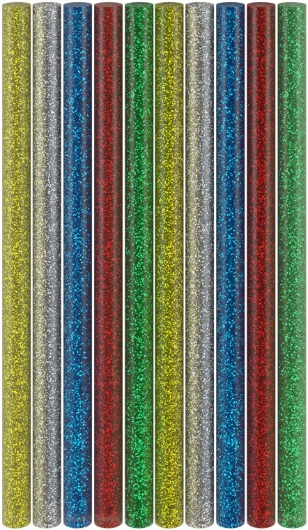 Эти стержни с высокой адгезией идеально подходят для рукоделия, декоративных проектов и творческих работ, требующих мерцающего эффекта. Они обеспечивают надежное склеивание широкого спектра материалов, включая дерево, картон, керамику, металл, кожу, акрил и стекло.