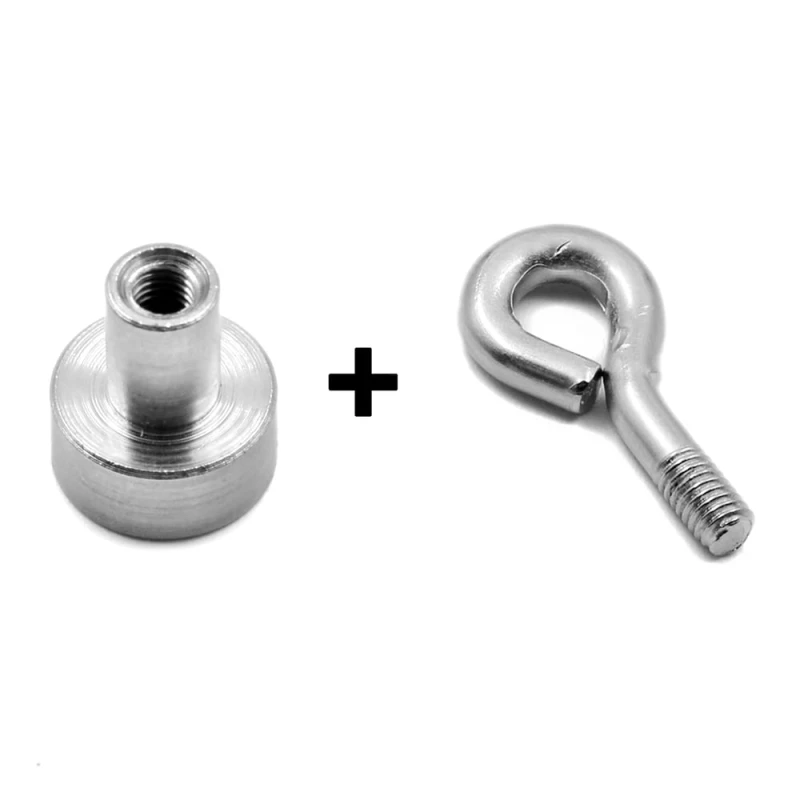 Компактный неодимовый магнит в корпусе (горшковый магнит, Ø 10 мм) с универсальным рым-болтом M3. Идеально подходит для надежного и простого подвешивания предметов (декораций, подвесных корзин) с помощью крючков или карабинов на ферромагнитных поверхностях.