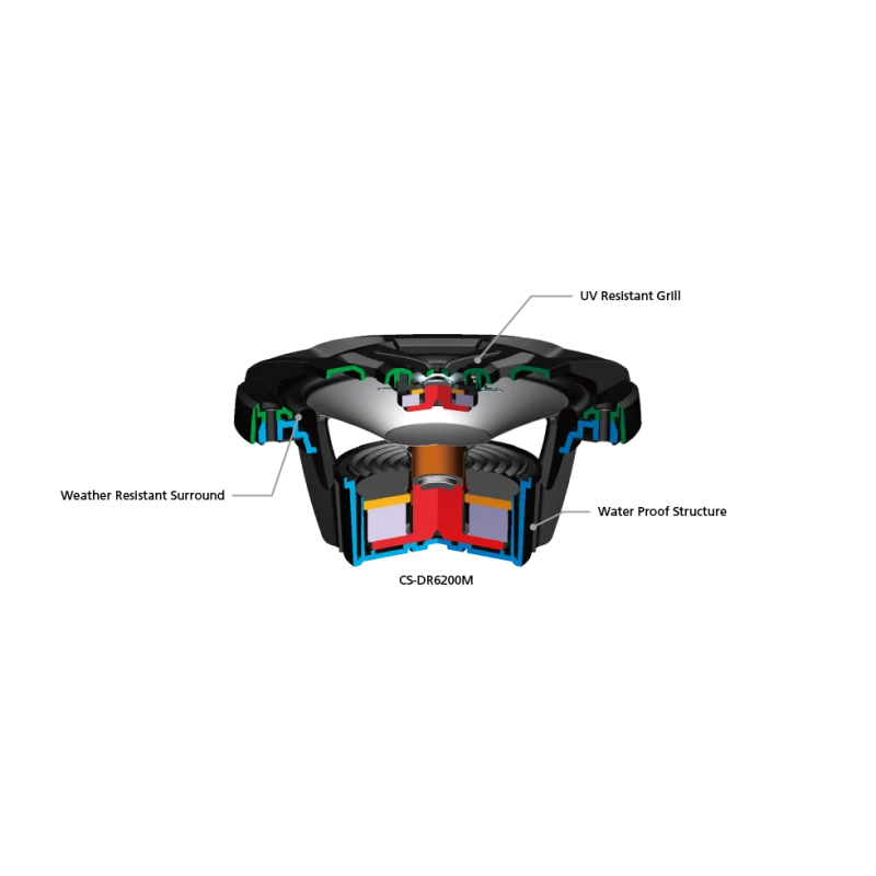 Оснащены корпусами из композитного материала, UV-стойкими решетками и водонепроницаемыми конусными басовыми динамиками.