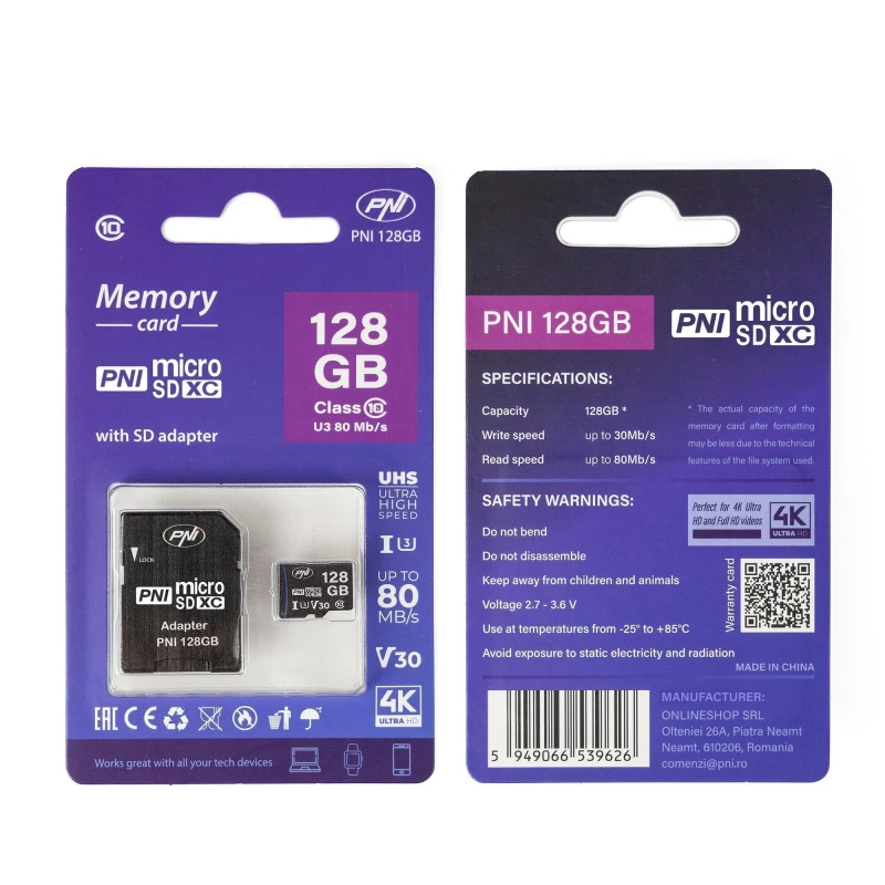 Карта памяти PNI 128GB MicroSD — это высокопроизводительное решение для хранения данных, разработанное для обеспечения скорости и надежности в требовательных цифровых средах. Она обеспечивает емкость 128 ГБ и включает SD-адаптер для широкой совместимости с различными устройствами на разных платформах.