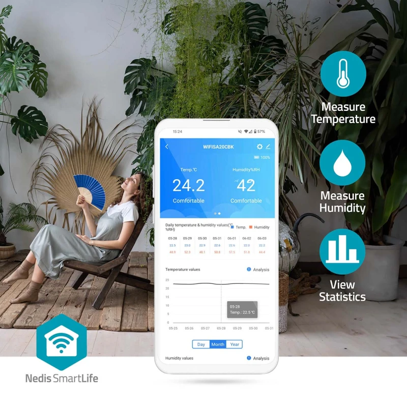 - Получайте автоматические уведомления непосредственно в приложение Nedis SmartLife, что позволяет вам удаленно контролировать качество воздуха из любого места.