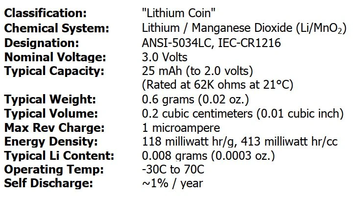 Обозначение: ANSI-5034LC, IEC-CR1216