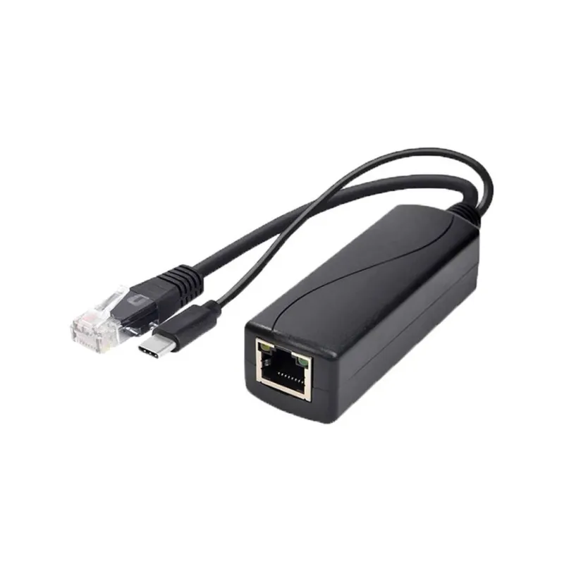 Это активный модуль-разветвитель Power over Ethernet (PoE), предназначенный для подачи питания на различные устройства по локальной сети (LAN). Он преобразует входящий сигнал PoE в питание, подаваемое через разъем USB-C.