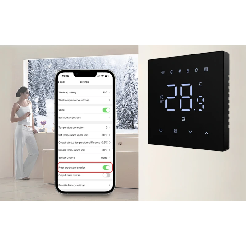 Умный термостат Avatto предназначен для управления электрическим отоплением. Благодаря подключению Wi-Fi вы можете контролировать температуру удаленно через приложение. Продукт также работает с популярными голосовыми помощниками и позволяет планировать работу и интегрироваться с другими интеллектуальными устройствами.