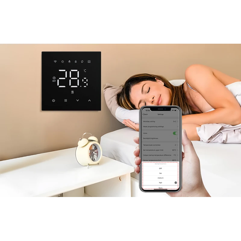 Регулируемая яркость светодиодного экрана HD обеспечивает дополнительный комфорт, особенно в ночное время, когда сон может быть нарушен. Также возможно полностью отключить освещение.