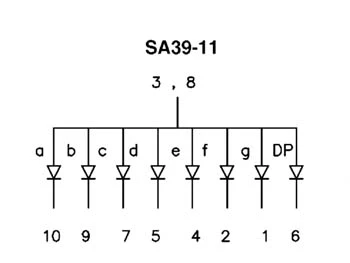 10-мм ОДНОРАЗРЯДНЫЙ ИНДИКАТОР С ОБЩИМ АНОДОМ СВЕРХКРАСНЫЙ