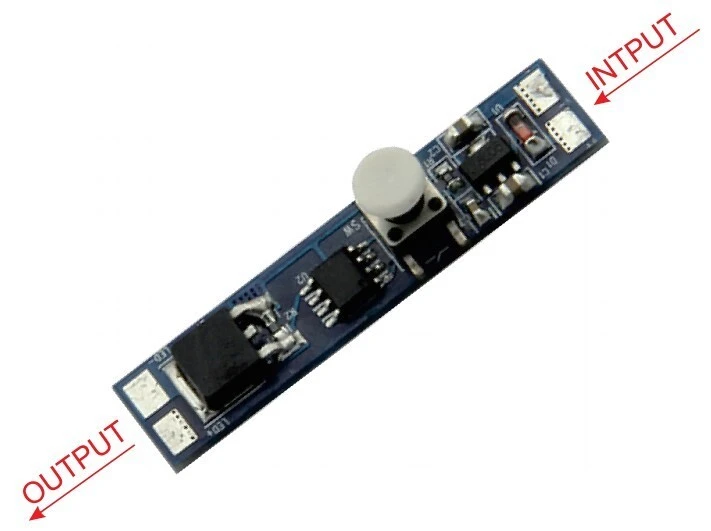 Первоначально выключен при подаче питания. Уменьшает яркость до минимума при удержании кнопки в течение 3 секунд, когда свет включен. Увеличивает яркость до максимума при повторном удержании кнопки в течение 3 секунд, когда свет выключен. Этот датчик сохраняет состояние яркости DC12V-24V.