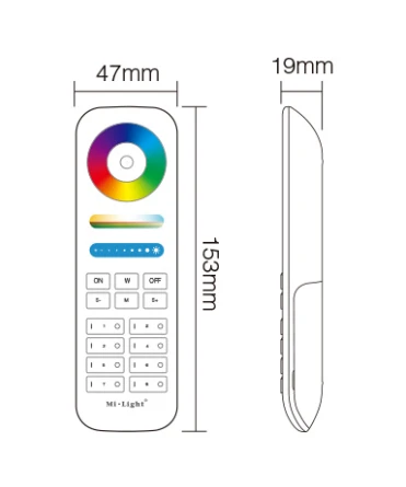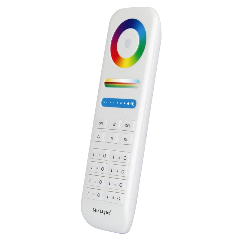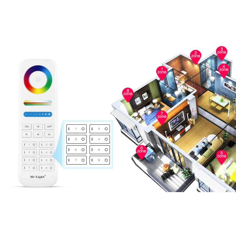 Это белый RGB+CCT LED пульт управления с 8 зонами.