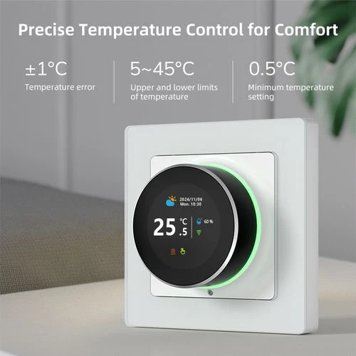 Термостат AVATTO Smart (SKU WT20R-WH-3A-W) с поворотной ручкой предназначен для систем водяного теплого пола и газовых котлов. Он обеспечивает интеллектуальное управление и энергосбережение для вашей системы отопления.