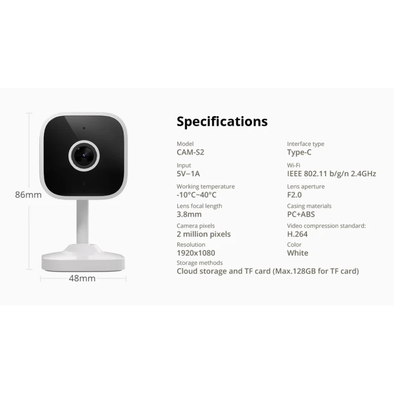 Sonoff CAM-S2 — это многофункциональная умная домашняя камера безопасности с разрешением Full HD 1080P, которая обеспечивает кристально чистое изображение в любое время и в любых условиях. С помощью этой камеры вы можете обеспечивать безопасность вашего дома и следить за происходящим, даже в темноте.
