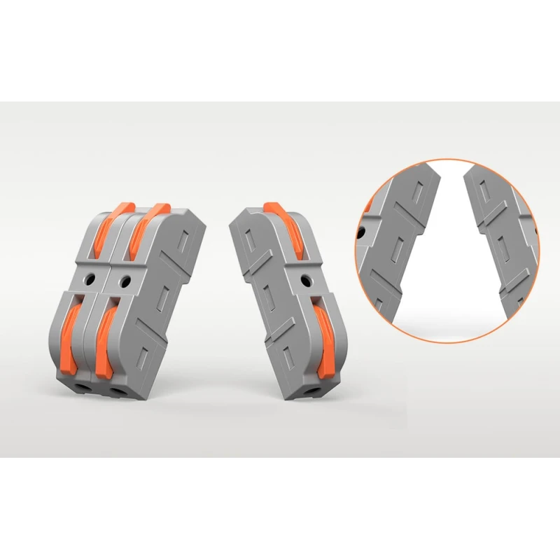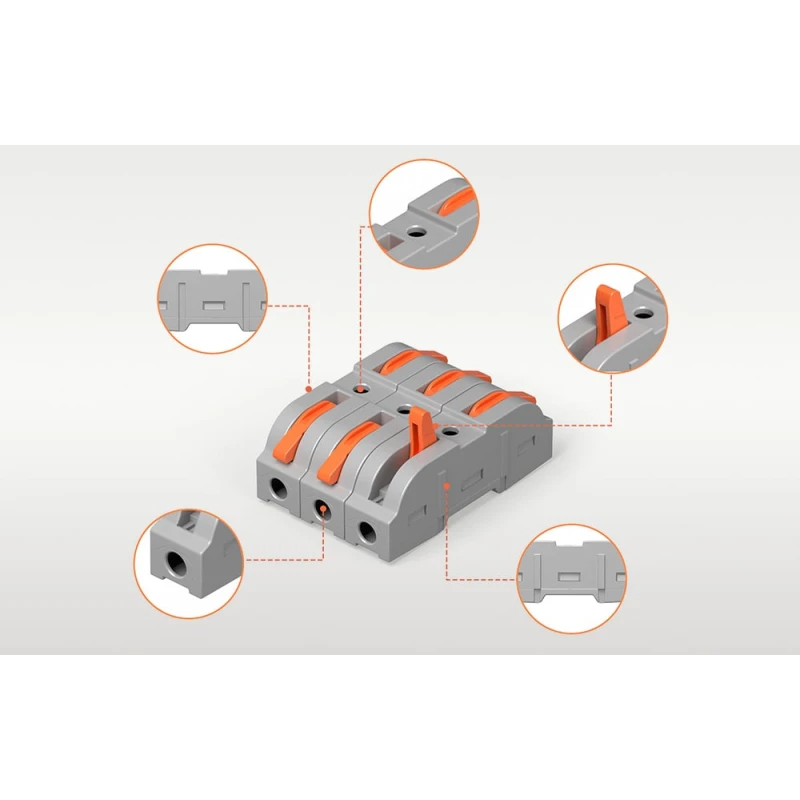 Размеры каждого быстрого разъема составляют 9,1 x 39,3 x 14,5 мм, что делает их компактными и простыми в использовании даже в ограниченном пространстве. Разъемы подходят для одножильных проводов сечением от 0,5 до 4 мм² (20-12 AWG) и гибких проводов сечением от 0,5 до 2,5 мм² (20-15 AWG).