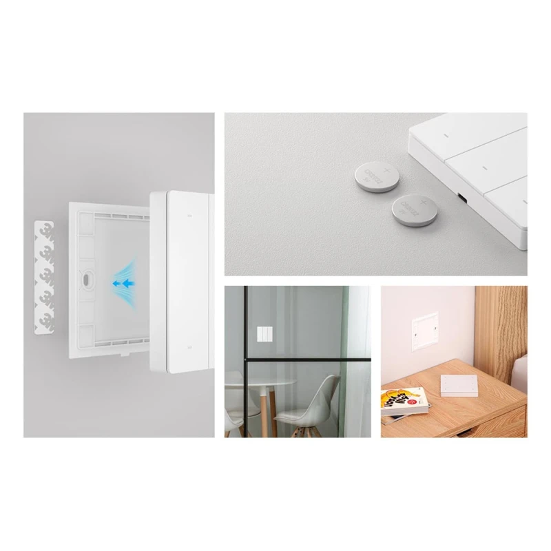 Кнопки поддерживают одиночный, двойной и долгий щелчок для различных операций. Установка легкая - просто прикрепить к стене или использовать как пульт. Питание от 2 батареек CR2032 сроком до 2 лет.