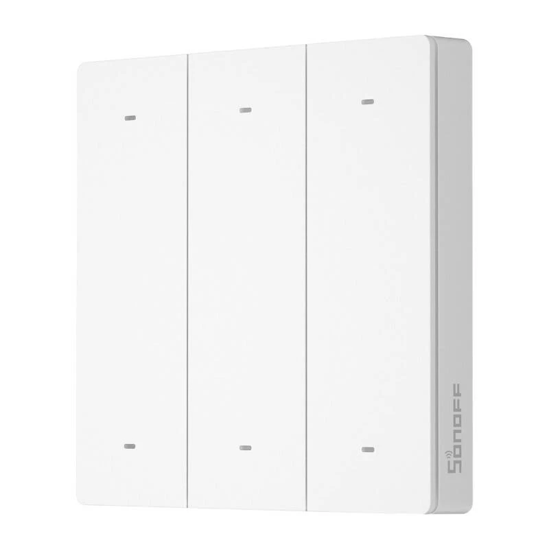 Sonoff R5 - настенный переключатель с 6 кнопками, функцией шлюза eWeLink-Remote и дальностью действия до 90 м. Может управлять устройствами в приложении eWeLink и запускать действия или сцены.