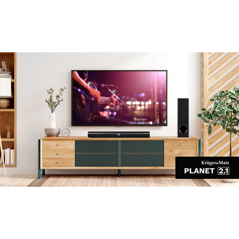 Саундбар Krüger & Matz Planet 2.1 — это высококачественное решение для аудио и домашнего кинотеатра, созданное для обеспечения великолепного звучания в вашей гостиной. Эта звуковая панель оснащена 2.1-канальной системой, состоящей из звуковой панели и отдельного сабвуфера, обеспечивающей глубокие басы и кристально чистый звук.