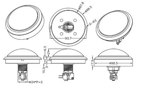 Кнопка ON-(OFF) 100мм черный корпус, красный индикатор