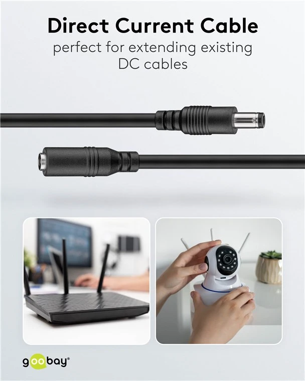 Удлиняет существующий силовой кабель или адаптер питания до 1,5 метров.