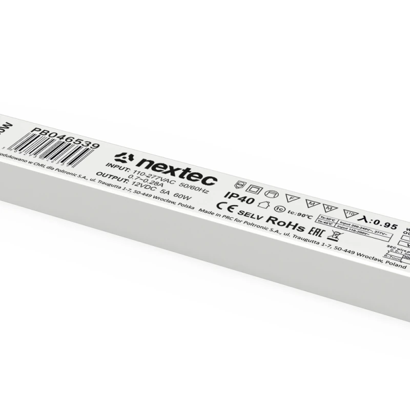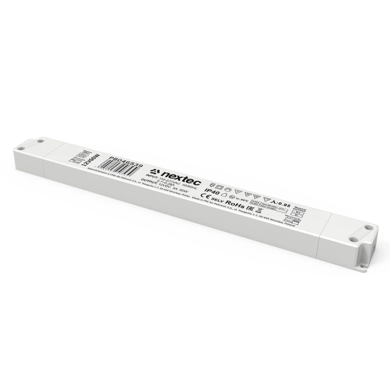 Блок питания 12В DC 5А 60Вт IP40 275x30x18мм Luna