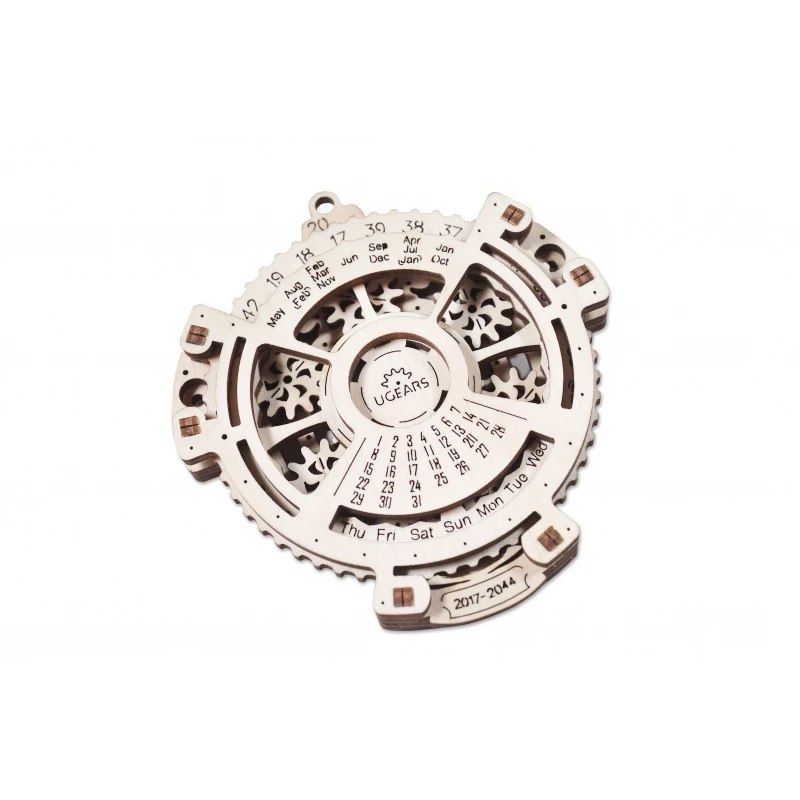 Модель «Навигатор дат» от Ugears - интересный механический календарь на 2017-2044 годы с планетарным стимпанк механизмом с подвижными шестернями внутри. К тому же, он приятно пахнет деревом. Покрутите кольцо с текущим годом в основе навигатора, сопоставьте нужный вам год и месяц и узнайте: на какой день недели (понедельник, вторник .... воскресенье) приходится каждый день месяца.