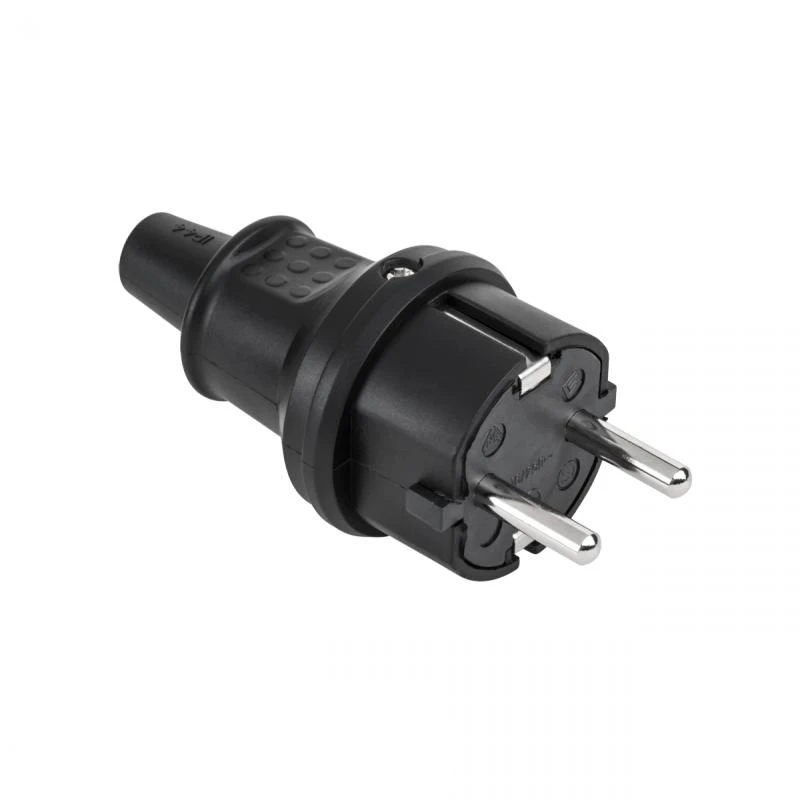 Сетевая вилка с заземлением 16A 250VAC IP44, резиновая оболочка Чёрная