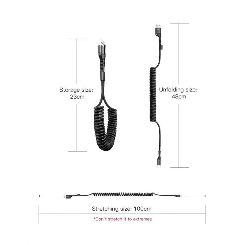Компактная и растягивающаяся конструкция этого кабеля делает его идеальным решением для использования в автомобиле, где он уменьшает беспорядок на центральной консоли, обеспечивая при этом достаточную длину как для водителя, так и для пассажиров. Он также отлично подходит для путешествий и использования с портативными внешними аккумуляторами.