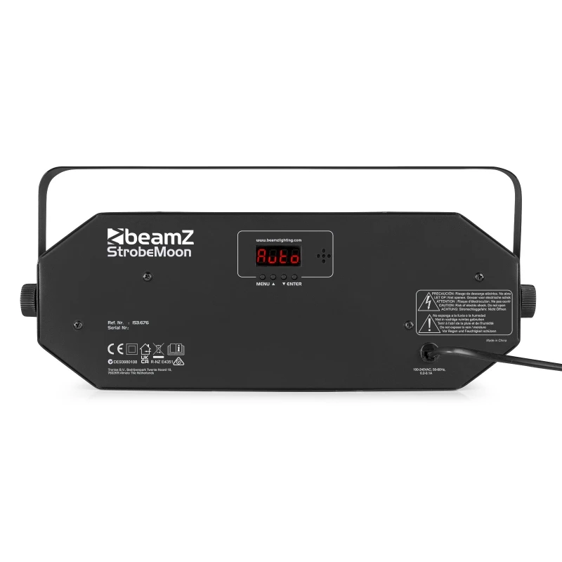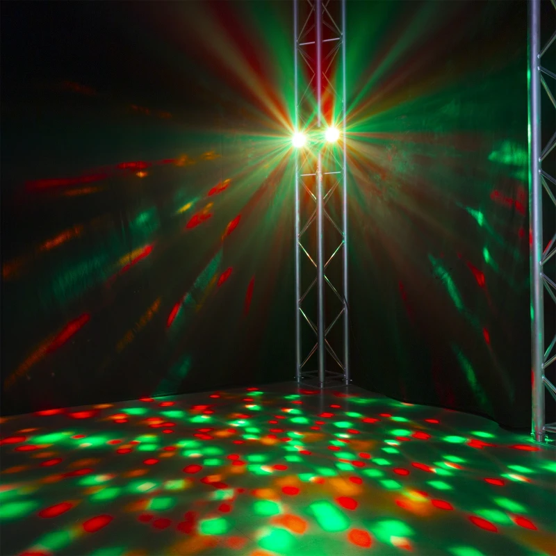 StrobeMoon сочетает в себе 2 великолепных эффекта в одном осветительном устройстве. Двойной эффект лунного цветка создает красочные световые узоры, которые вместе с белыми мощными светодиодами освещают любую танцпол. Оснащен мощной функцией стробоскопа, которая создает в комнате дополнительную атмосферу. Это устройство предлагает небольшим клубам и мобильным артистам удобство создания нескольких эффектов в одном световом шоу без необходимости транспортировки нескольких светильников.