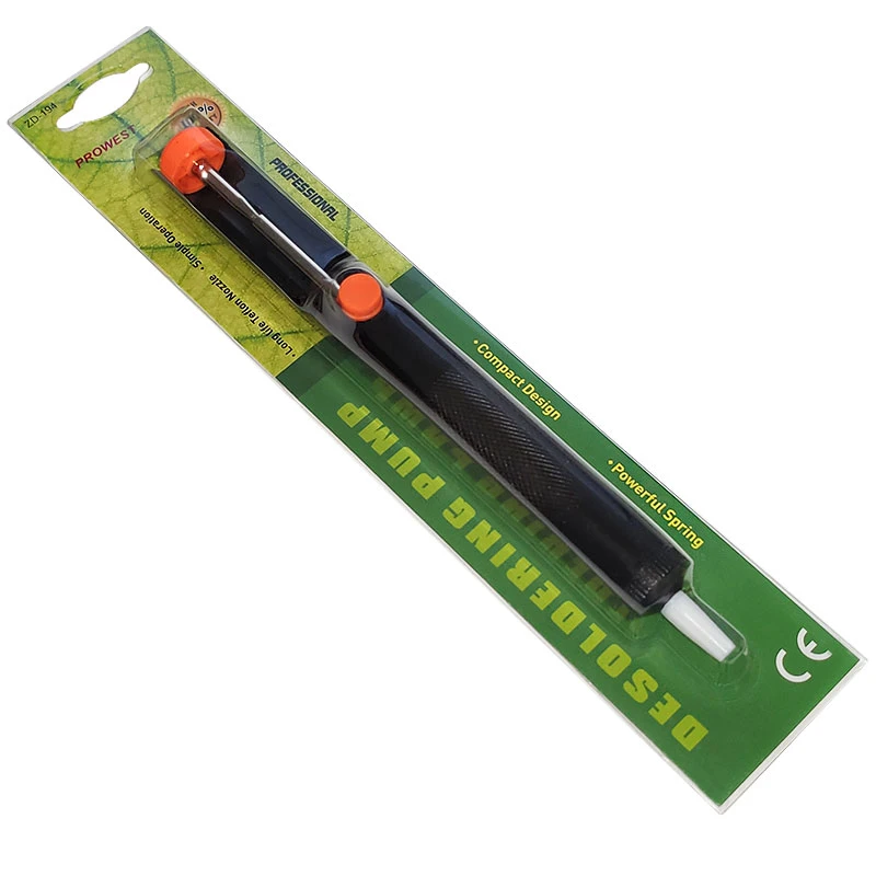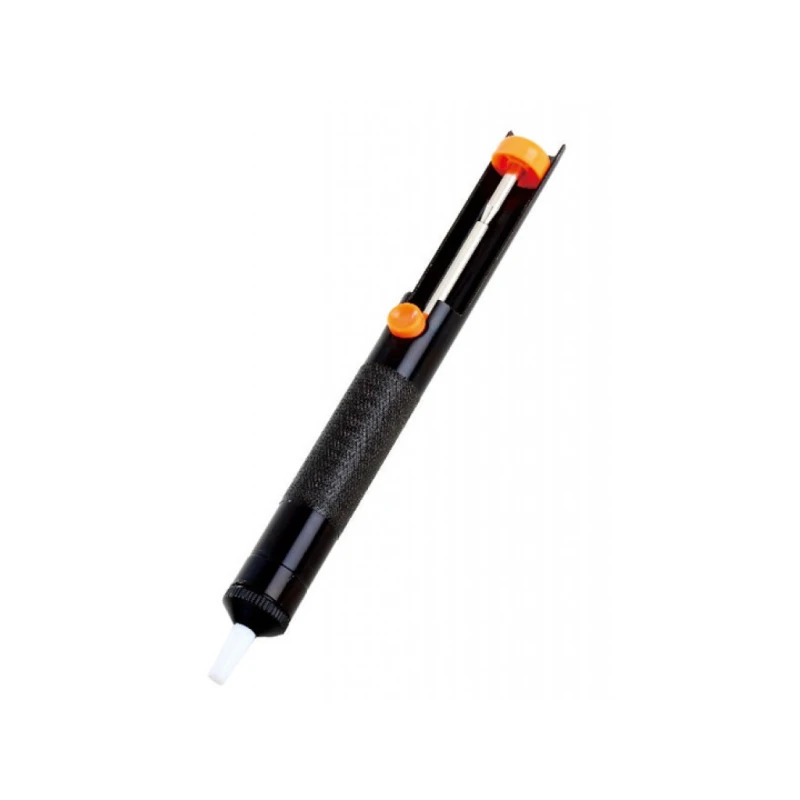 Оловоотсос ZD-194, металлический служит для удаления излишков или остатков металлического припоя и флюса, которые образуются в процессе монтажа или демонтажа радиоэлементов.