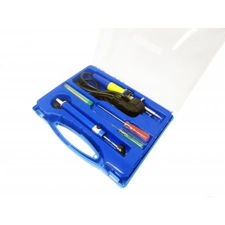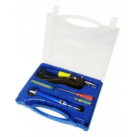 Держите все необходимое в одном месте. Комплект для пайки включает паяльник, помпу, подставку для паяльника, припой и две отвертки: (-)3mm x 100mm (+)3mm x 100mm.