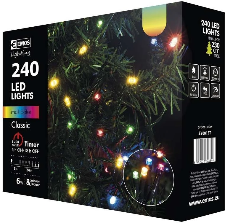 Sobib 230cm puule. IP44 klassiga jõuluvalgustus sobib paigaldamiseks ka välitingimustesse (vältida otsest kokkupuudet vihma või lumega, sobib kasutamiseks näiteks räästa all). Automaatne sisse-/väljalülitus. Toide 230V, LED-ide vahe 10cm.