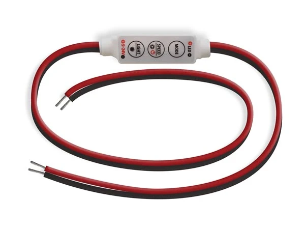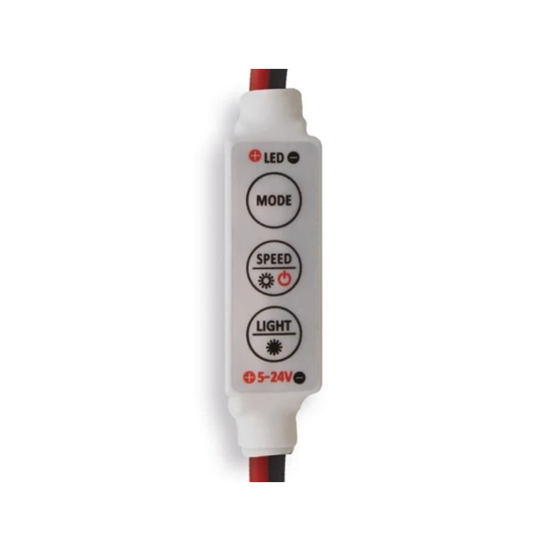 <b>Mini LED dimmer</b> on kompaktne ja mitmekülgne dimmer, mis sobib ideaalselt kasutamiseks ühevärviliste LED ribadega. See seade pakub kolme funktsiooni: <b>valgustuse sisse- ja väljalülitamine</b>, üheksa erineva hämardusastme s