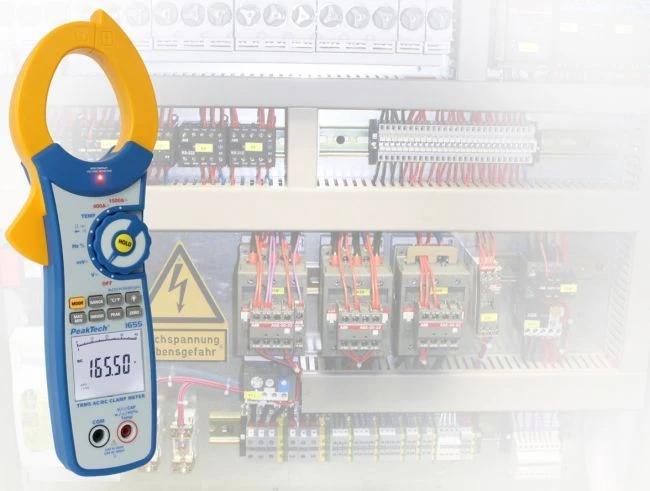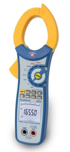 **PeakTech 1655** обладает некоторыми специальными функциями, такими как **быстрое измерение пускового тока (Inrush)**, **фиксация пикового значения (Peak)** или **бесконтактный индикатор напряжения (NCV)**. Измерения тока и напряжения выполняются как **True RMS (истинное среднеквадратичное значение)**, что означает, что измеренные значения отображаются корректно даже при формах волн, отклоняющихся от синусоиды. Благодаря своей **высокой точности и функциональности**, **PeakTech 1655** идеально подходит для повседневного использования в **торговле и промышленности**.
